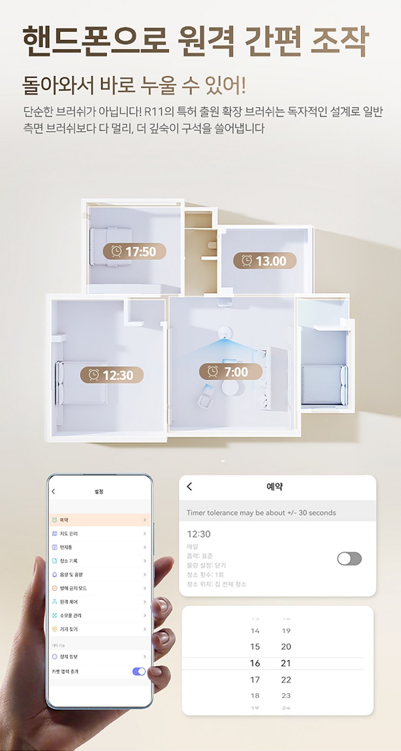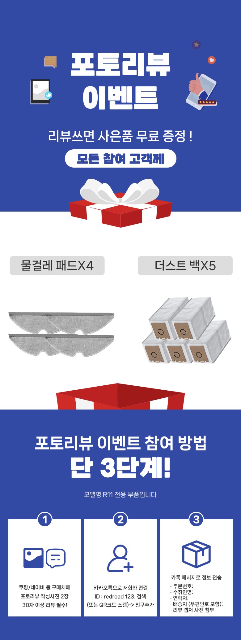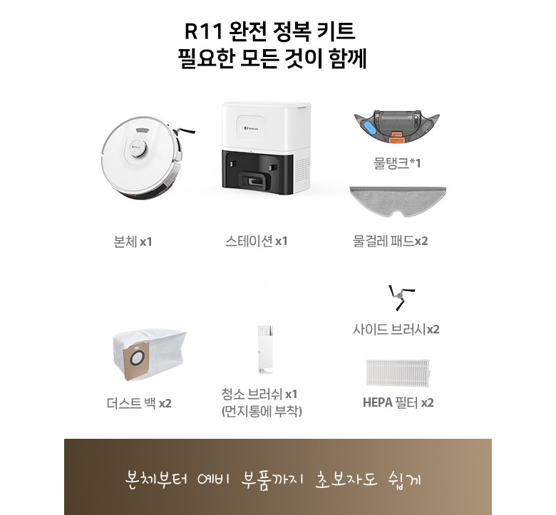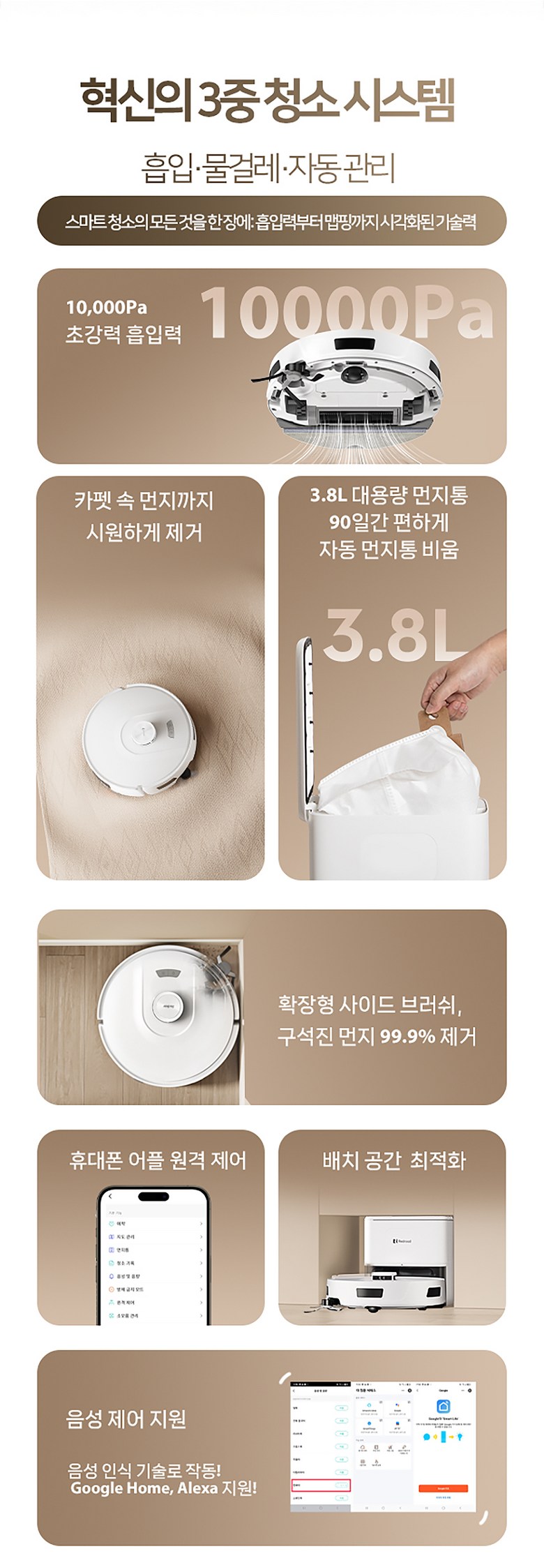 Redroad R11 LDS센서 2in1 물걸레 로봇청소기 강력한 10000Pa 흡입력 사이드 브러쉬 확장 특허 기술 먼지비움 어플연동