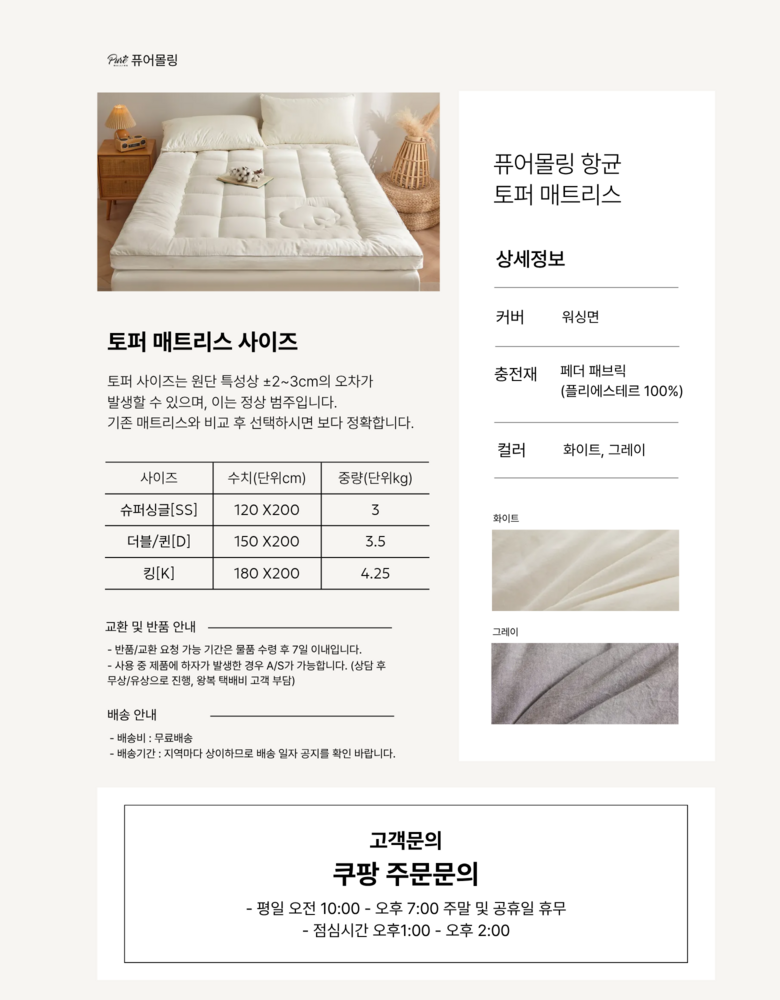 | 제품 소재 | 상품 상세페이지 참조 | 색상 | 화이트, 그레이 |