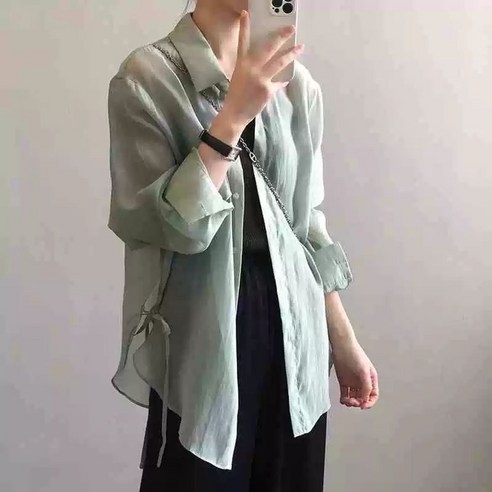 오간자셔츠 텐셀60수 옆리본샤링 자켓 시스루 빅사이즈