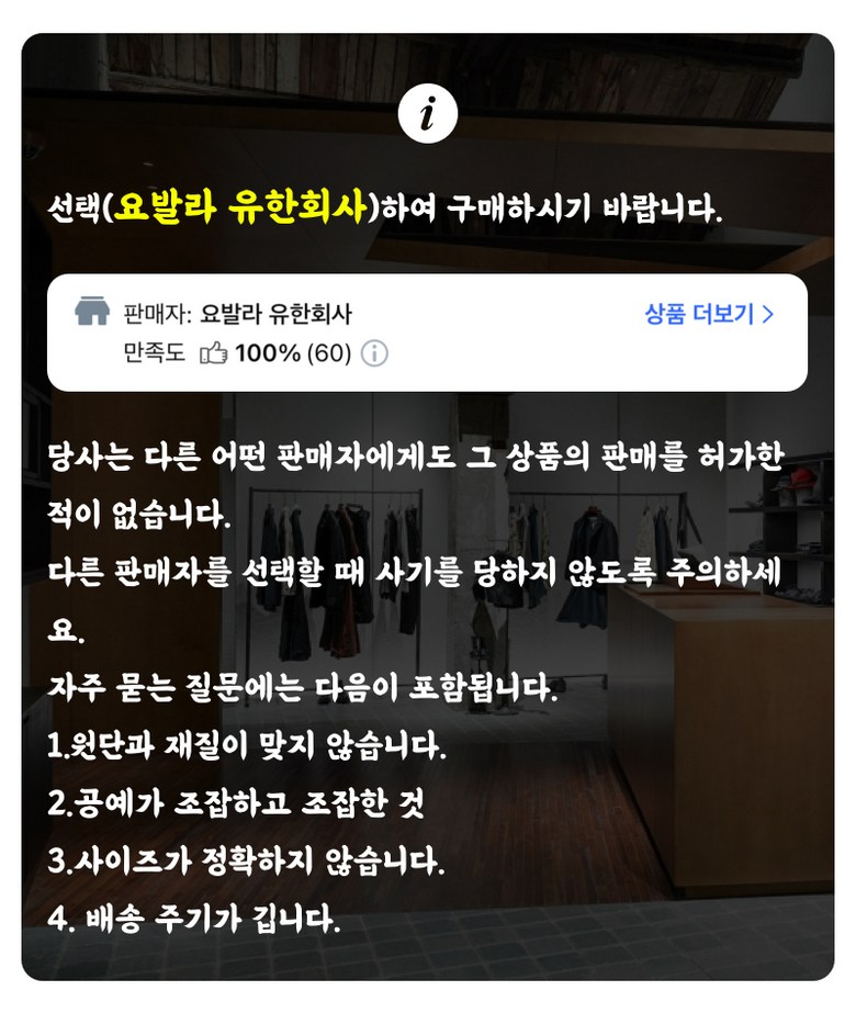 판매 부적격 상품 또는 허위과장광고 및 지식재산권을 침해하는 상품의 경우 신고하여 주시기 바랍니다.