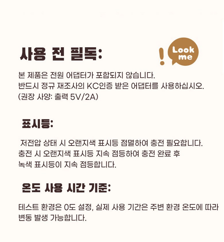 - 전원공급방식: USB 충전식