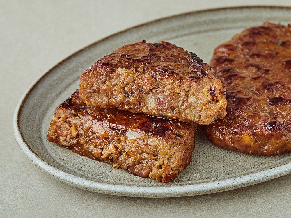 두툼하게 빚어 육즙이 입안 가득 퍼지는 떡갈비입니다. 지방이 적절히 섞인 돼지 갈빗살과 담백한 뒷다리, 등심살을 함께 사용했는데요. 덕분에 고소한 풍미가 진한 것은 물론, 부드러우면서 쫄깃한 식감이 돋보이죠. 불고기 소스로 달짝지근하게 양념해 입에 착 감기는 감칠맛도 일품이에요. 맨밥 위에 올리기만 해도 훌륭하고요. 빵 사이에 쏙 끼워 햄버거 패티로 활용해도 손색없답니다. 전자레인지로 간편한 조리가 가능하고, 팬에 노릇노릇 구우면 한정식집에서의 비주얼을 만날 수 있어요.