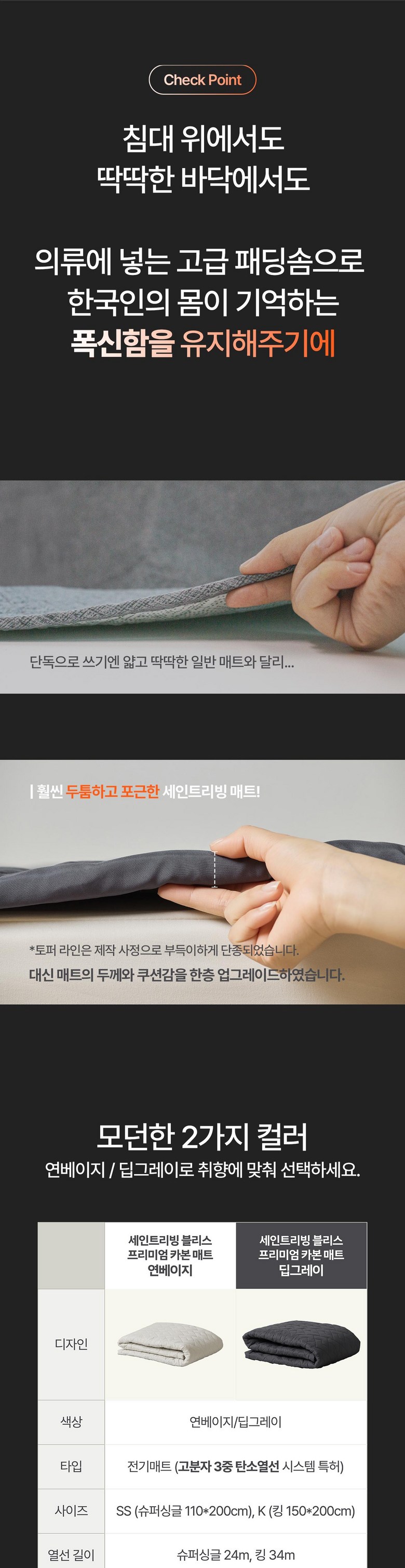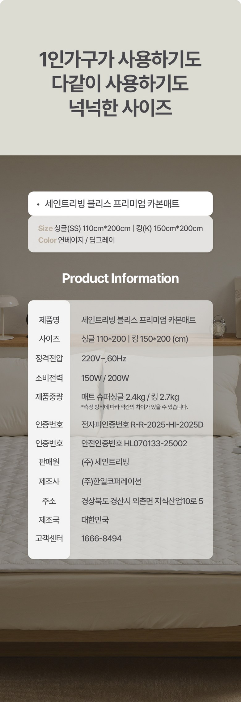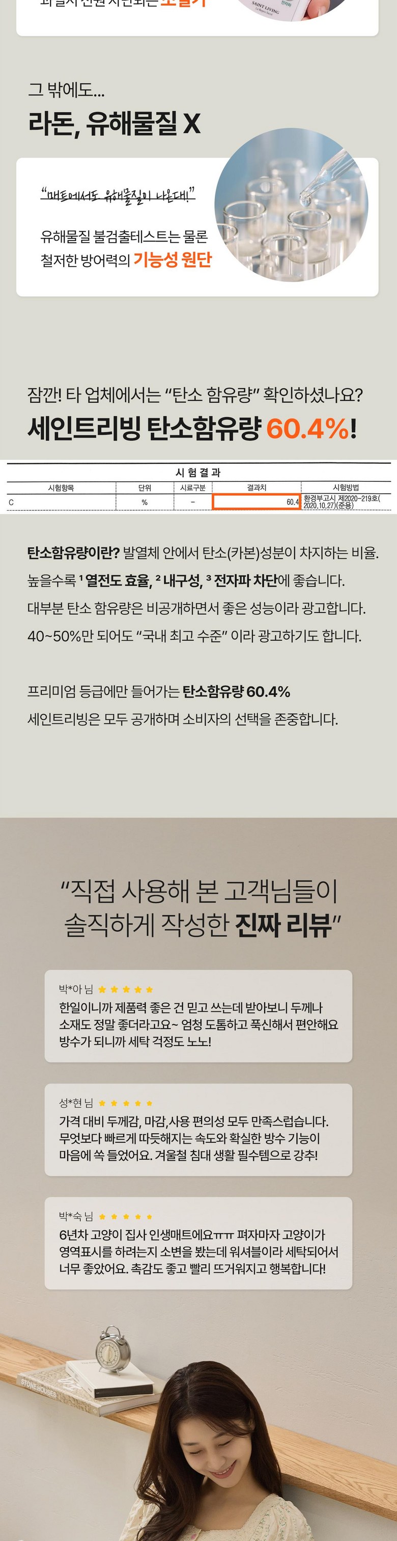 | 품명 및 모델명 | 세인트리빙 블리스 카본 매트/토퍼 | KC 인증정보 | HL070133-25002R-R-2025-HI-2025D |