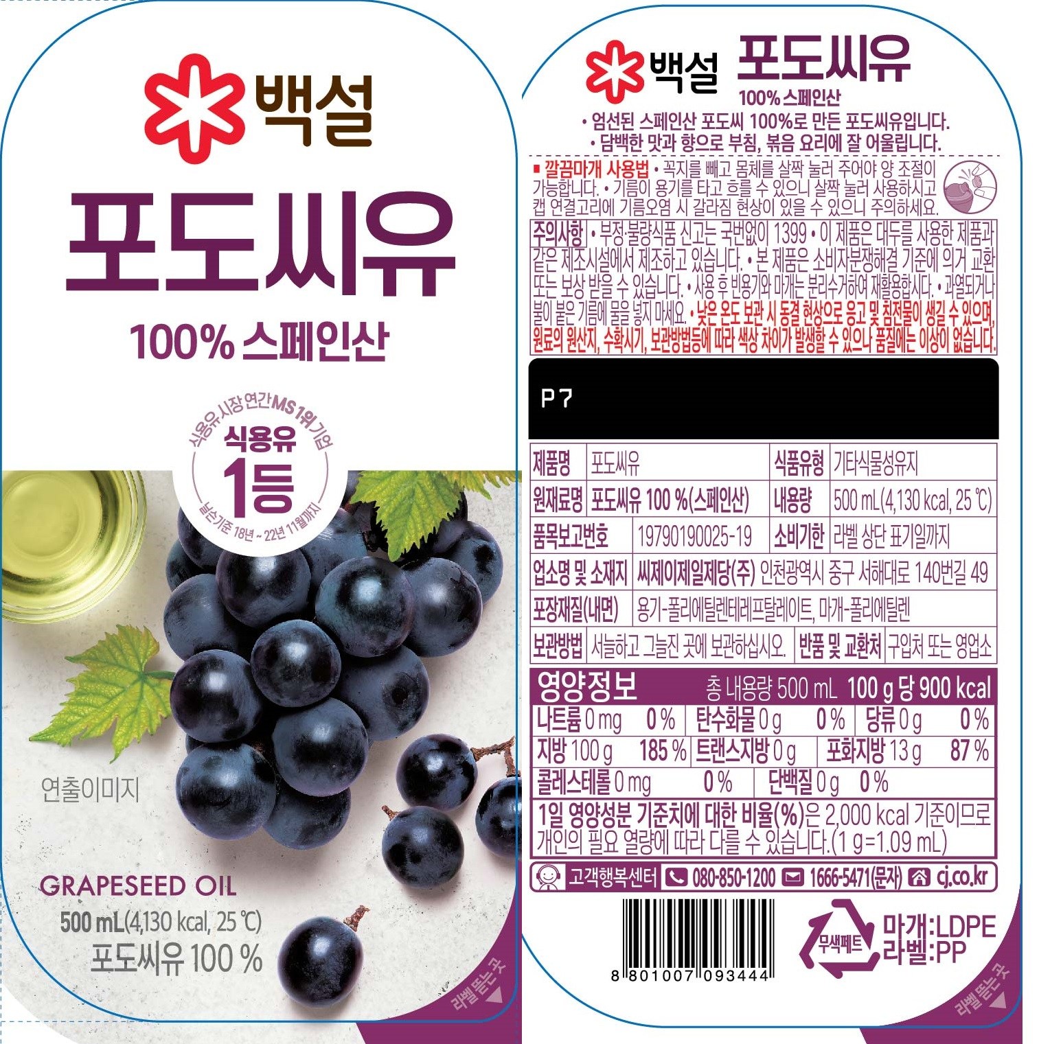 - 종류: 포도씨유