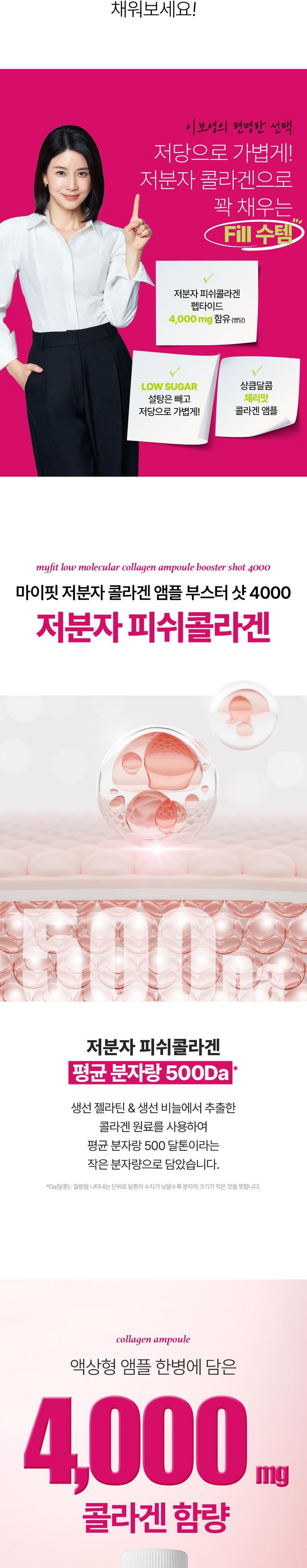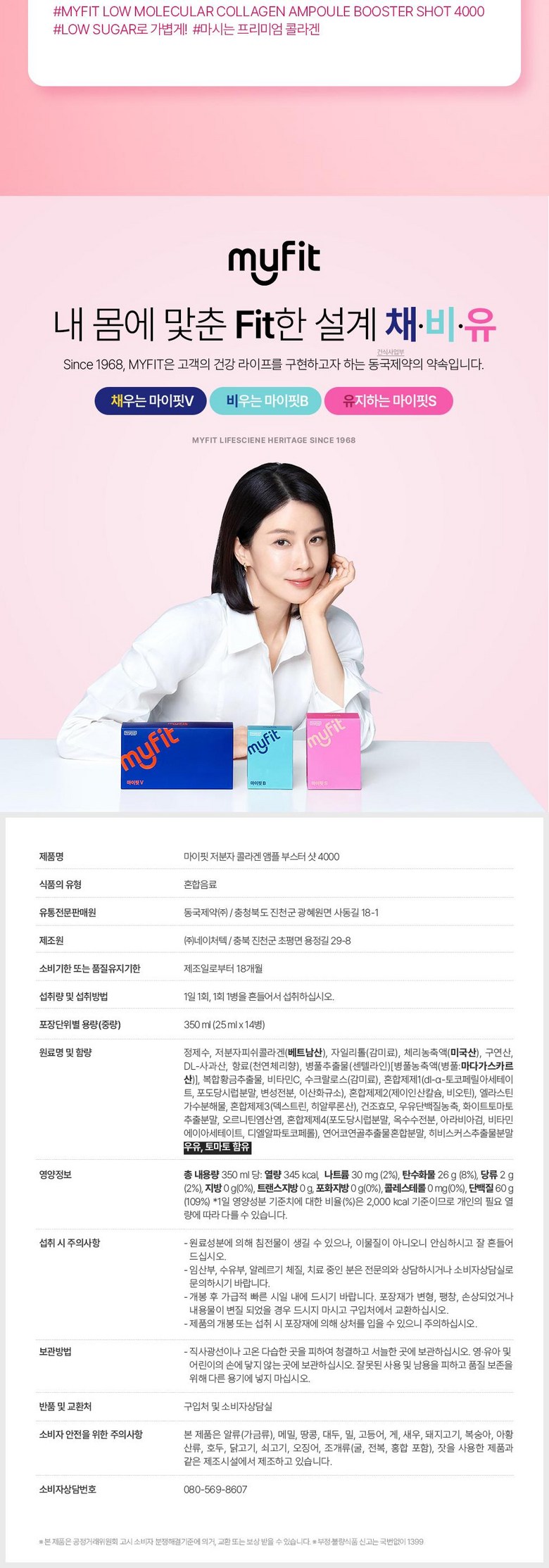 | 제품명 | 마이핏 저분자 콜라겐 앰플 부스터 샷 4000 | 식품의 유형 | 혼합음료 |
