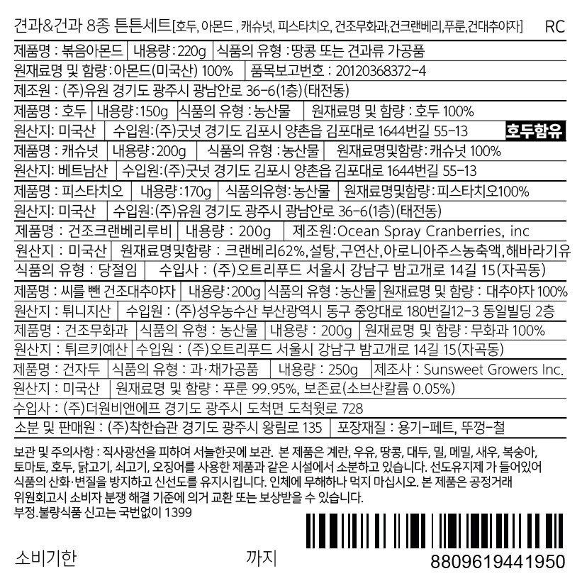| 제조연월일, 소비기한 또는 품질유지기한 | 소비기한(또는 유통기한) : 2026년 08월 28일 이거나 그 이후인 상품 제조년월일 : 2025년 08월 29일 이후인 제조상품 | 세부 품목군별 표시사항 | 농수산물 : 유전자변형(해당 없음) / 지리적 표시사항(해당 없음) |