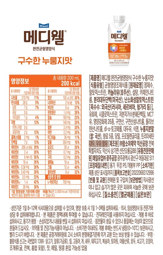 | 포장단위별 내용물의 용량(중량), 수량 | 200ml, 18개 | 원재료명 및 함량 | 컨텐츠 참조 |