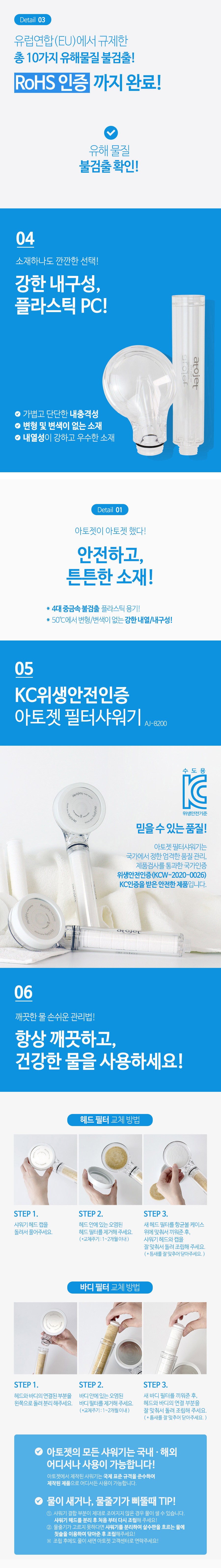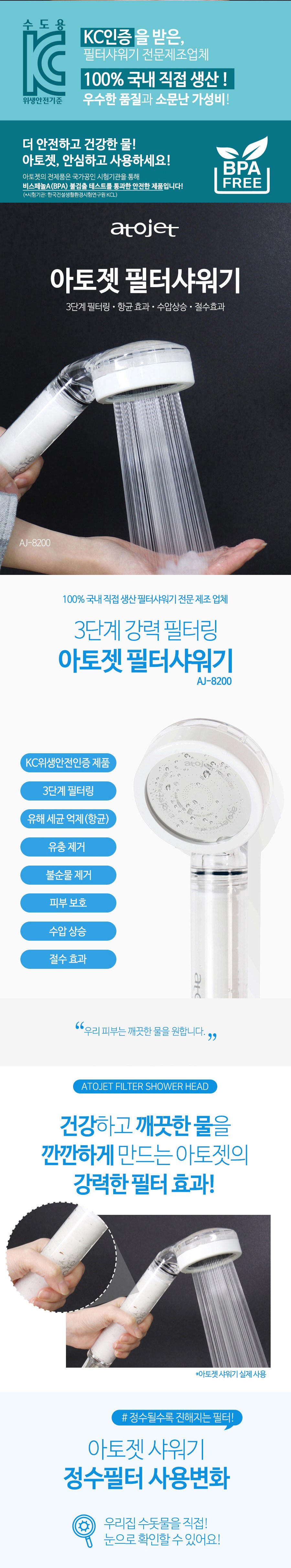 | 품명 및 모델명 | 아토젯 항균 필터 샤워기 본품2개 AJ-8200 | 인증/허가 사항 | KCW-2020-0026 |