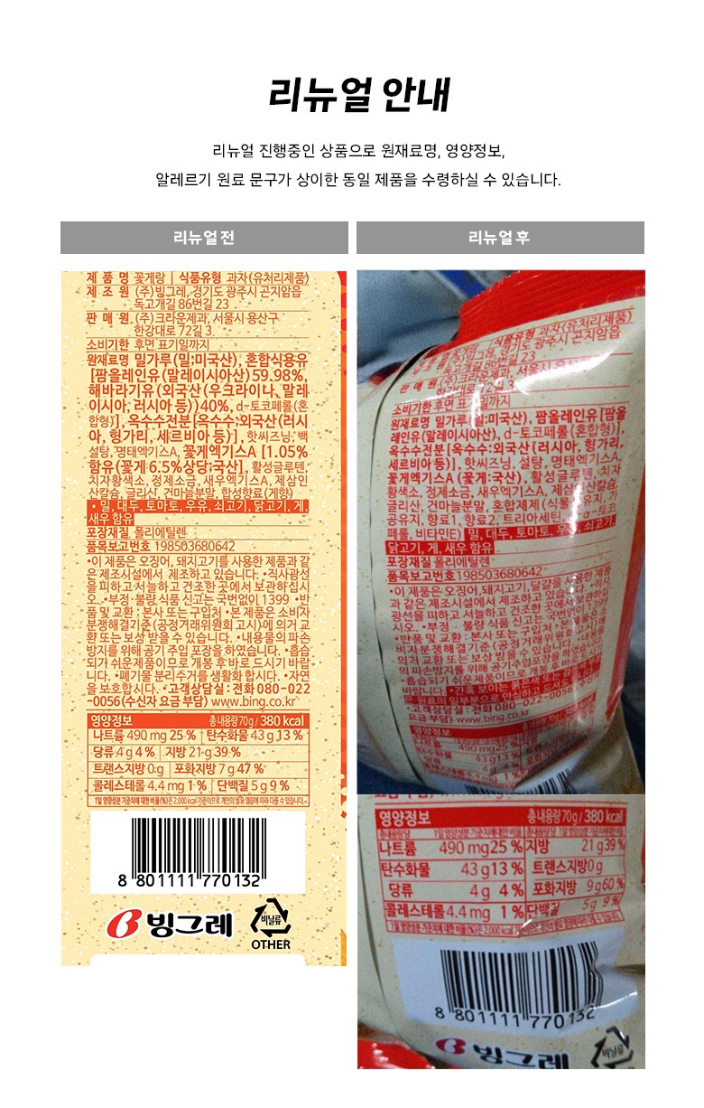 | 제품명 | 컨텐츠 참조 | 식품의 유형 | 컨텐츠 참조 |