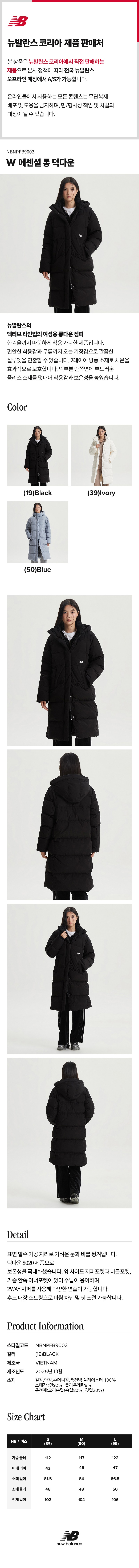 뉴발란스 여성용 에센셜 롱 덕다운 패딩 NBNPFB9002