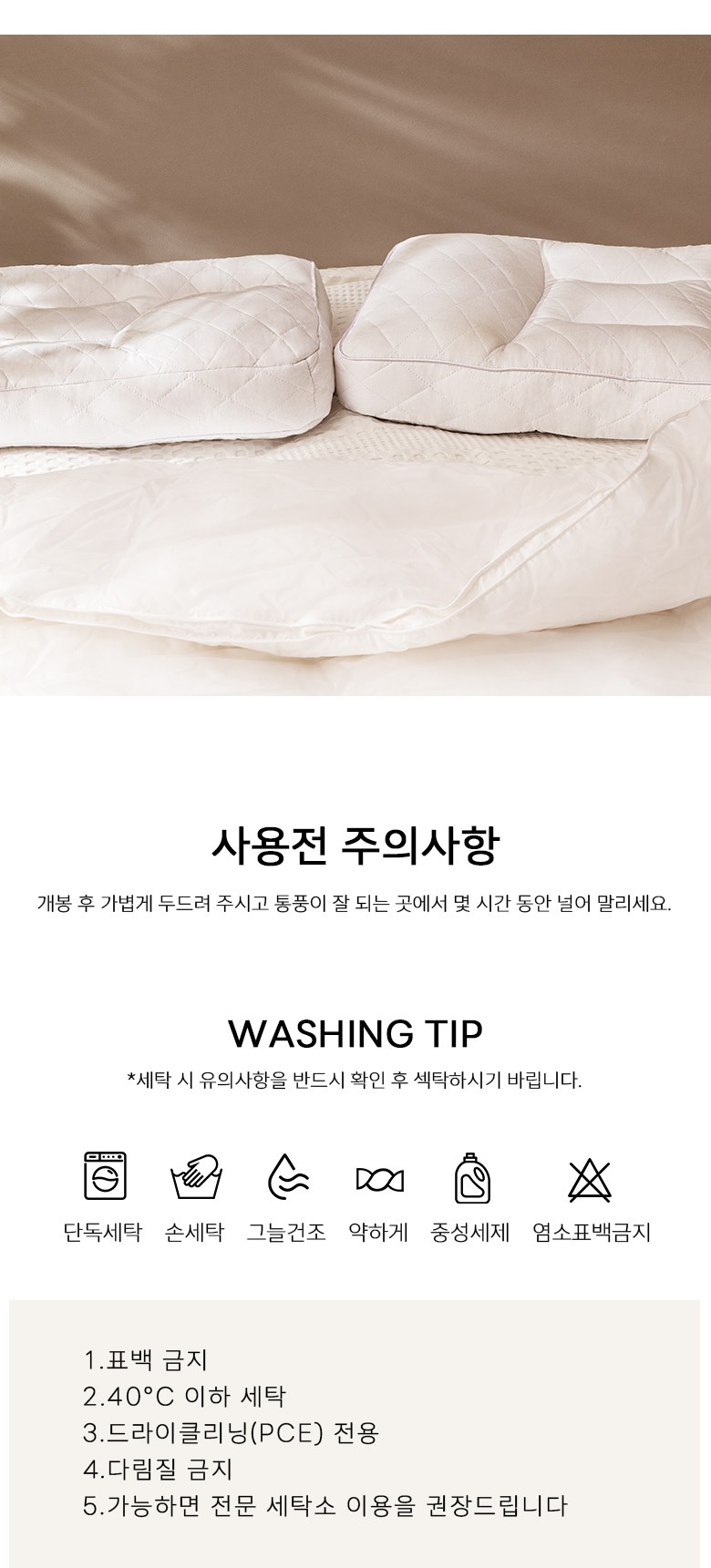 목이 베개 중앙에 자연스럽게 위치하도록 눕습니다. 장시간 햇볕에 직접 노출하기보다는 주기적으로 통풍이 잘 되는 곳에서 건조하세요.