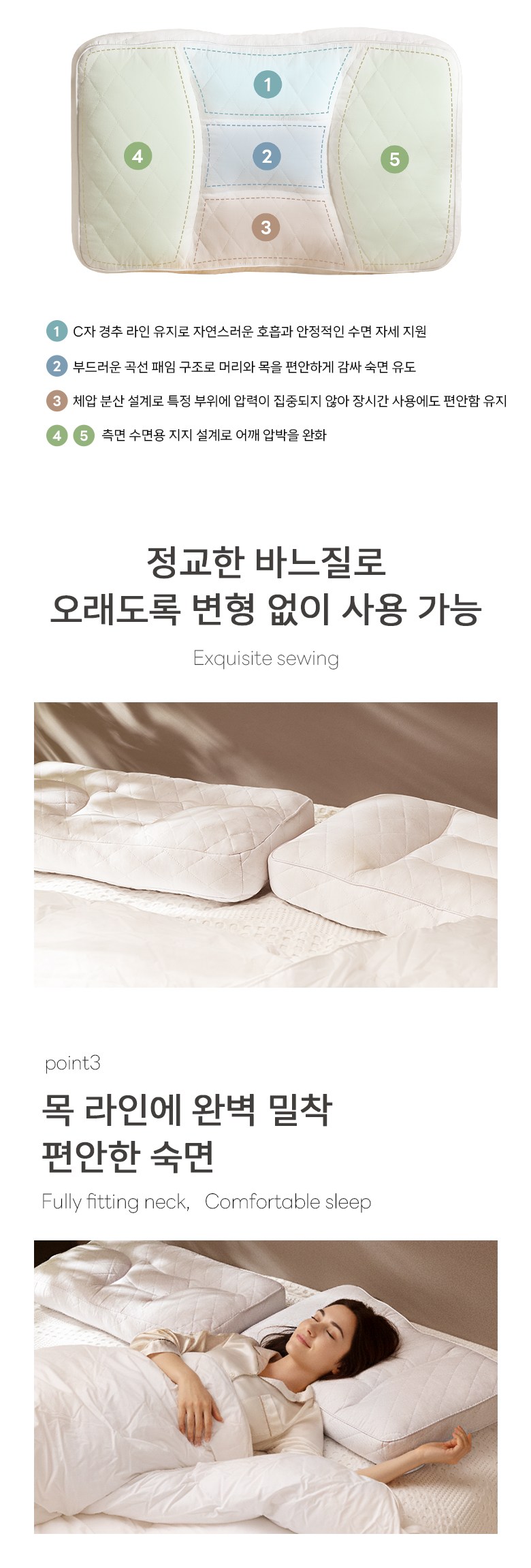 ✔ 경추 지지 : 목의 곡선을 따라 자연스럽게 지지해 피로 완화