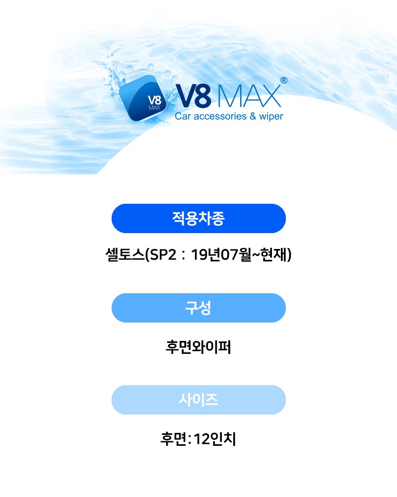 | 품명 및 모델명 | [V8와이퍼] 기아 셀토스(SP2:19년07월~현재) 후면 | 동일모델 출시년월 | 2023.05 |