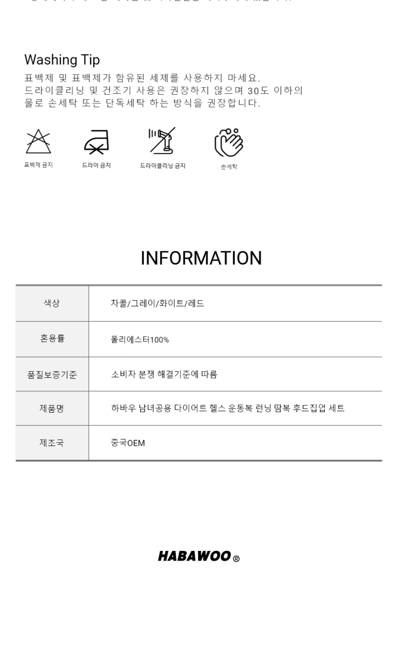 | 제조국 | 중국OEM | 세탁방법 및 취급시 주의사항 | 상품 상세페이지 참조 |