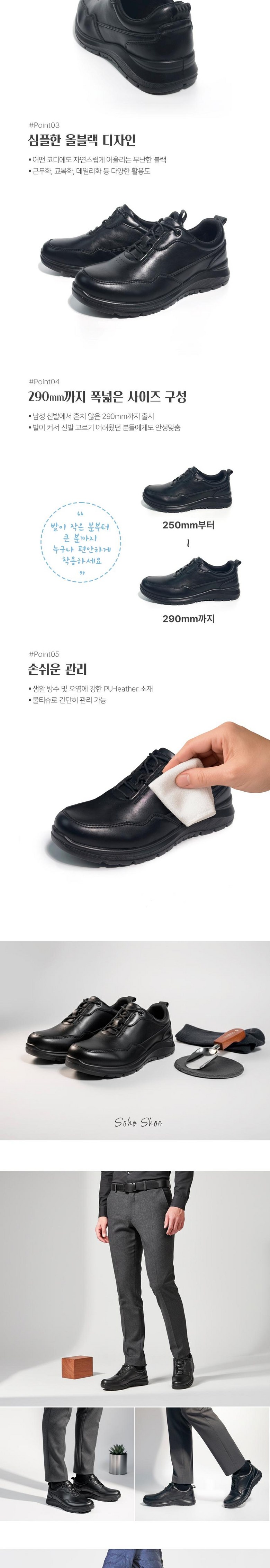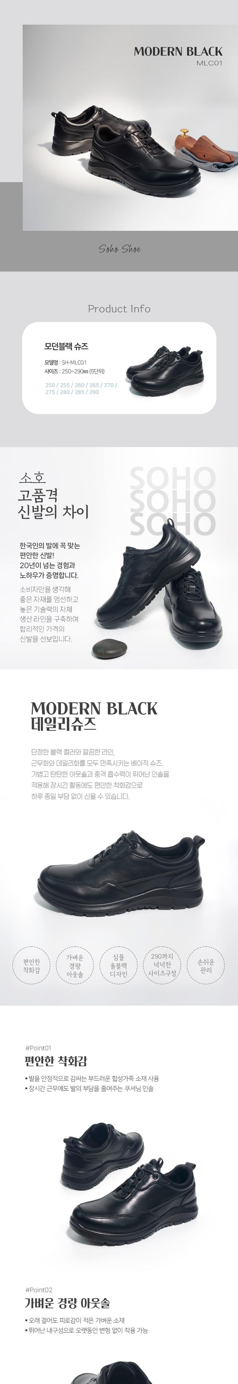 [소호] 남성 모던 블랙 슈즈 프리미엄 레더 캐주얼 컴포트화 사이즈250- 290mm SH_MLC01