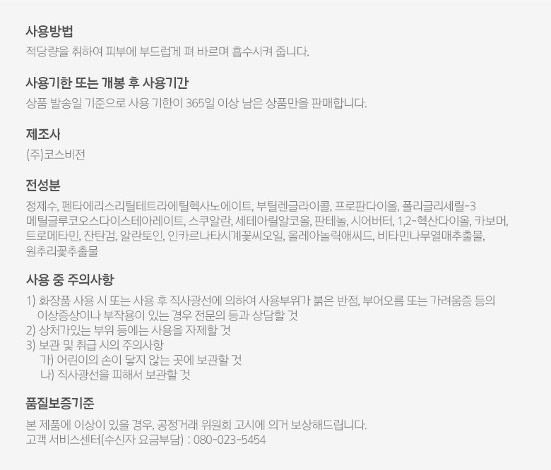 | 용량(중량) | 컨텐츠참조 | 제품 주요 사양 | 모든 피부용 |
