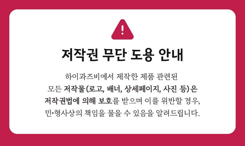 | 교환/반품 신청 기준일 | ㆍ단순변심에 의한 교환/반품은 제품 수령 후 7일 이내까지, 교환/반품 제한사항에 해당하지 않는 경우에만 가능 (배송비용과 교환/반품 비용 왕복배송비 고객부담) ㆍ상품의 내용이 표시·광고의 내용과 다른 경우에는 상품을 수령한 날부터 3개월 이내, 그 사실을 안 날 또는 알 수 있었던 날부터 |