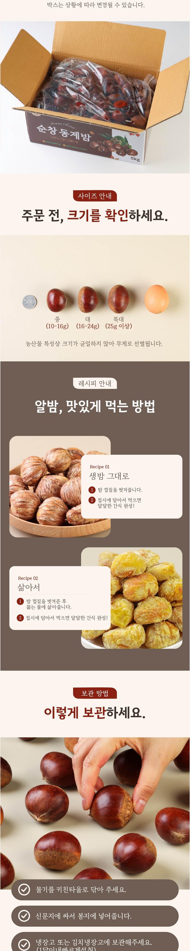 | 품목 또는 명칭 | 부여, 공주, 동계 대사이즈 알밤 | 포장단위별 내용물의 용량(중량),수량,크기 | 16-24g이상 사이의 대사이즈 알밤이 배송됨 |