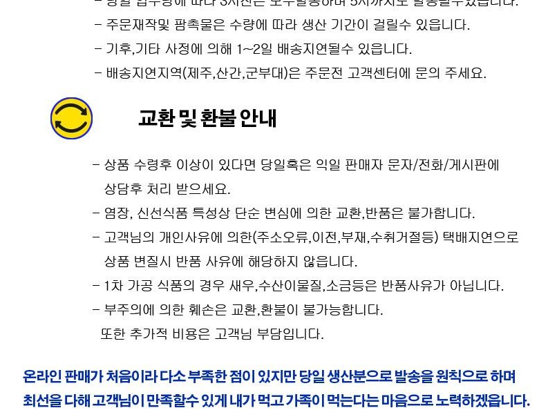 - ㆍ모니터 해상도의 차이로 인해 색상이나 이미지가 실제와 달라, 고객이 단순 변심으로 교환/반품을 무료로 요청하는 경우