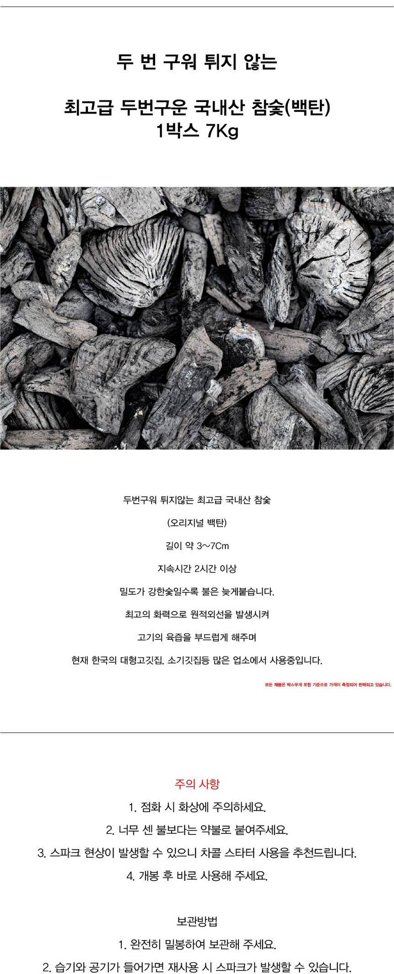 두번구워 튀지않는 국내산참숯(백탄)
