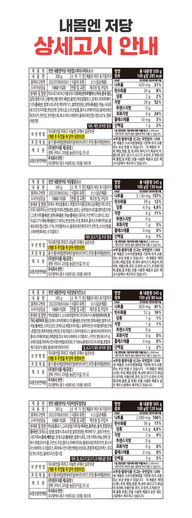| 제품명 | 첫맛 내몸엔저당 불닭소스 | 식품의 유형 | 소스류 |