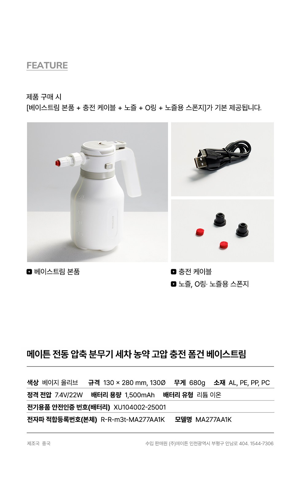 | 품명 및 모델명 | 전동분무기 / MA277AA1K | 동일모델 출시년월 | 업체미제공 |