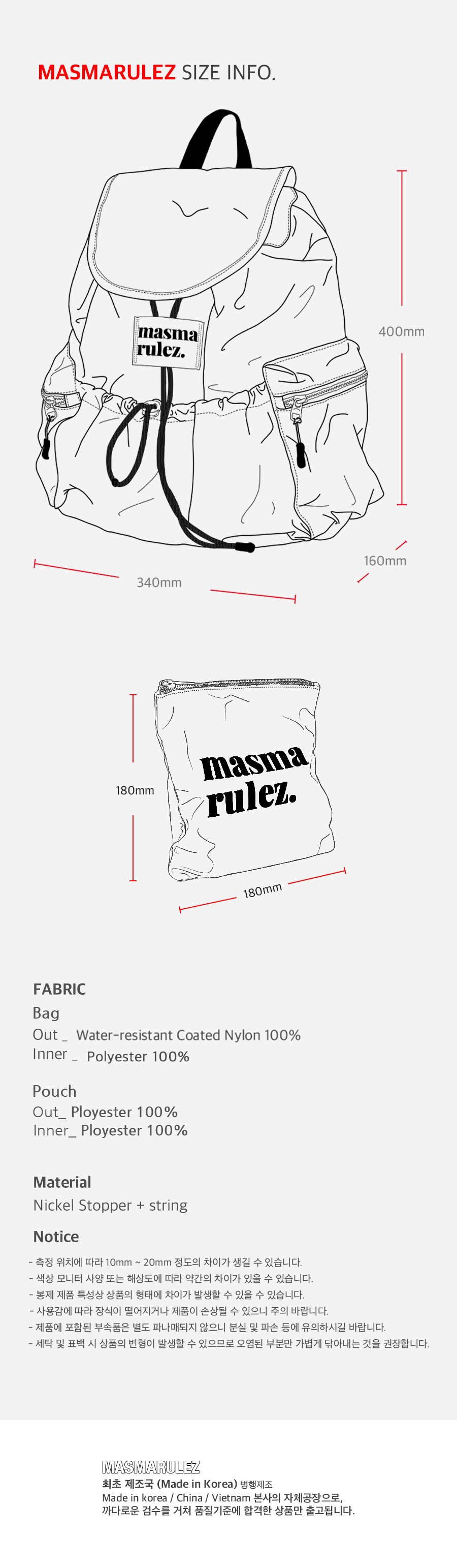 | 종류 | 백팩 + 파우치 | 소재 | 컨텐츠 참조 |