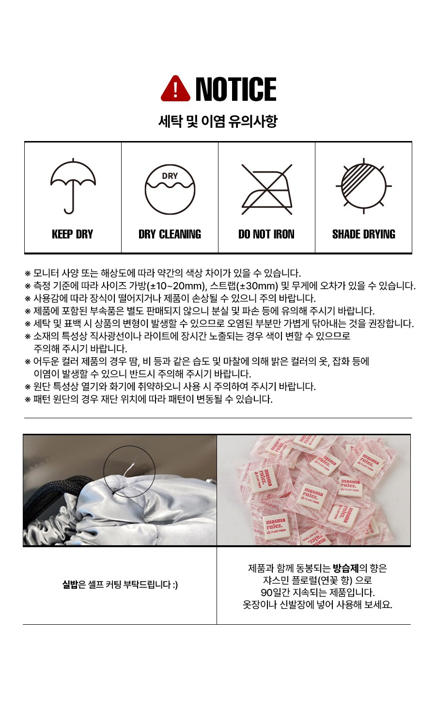 - ㆍ모니터 해상도의 차이로 인해 색상이나 이미지가 실제와 달라, 고객이 단순 변심으로 교환/반품을 무료로 요청하는 경우