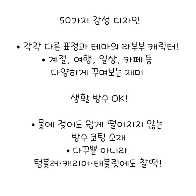 | 품명 및 모델명 | 라부부 방수 다꾸 스티커 50장 세트 | 인증/허가 사항 | 상품 상세페이지 참조 |