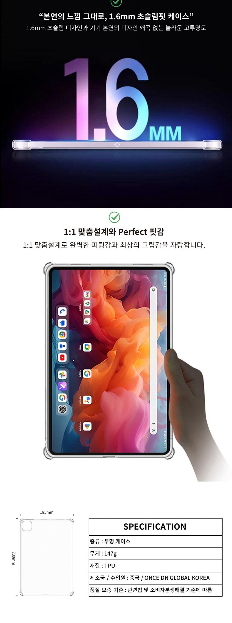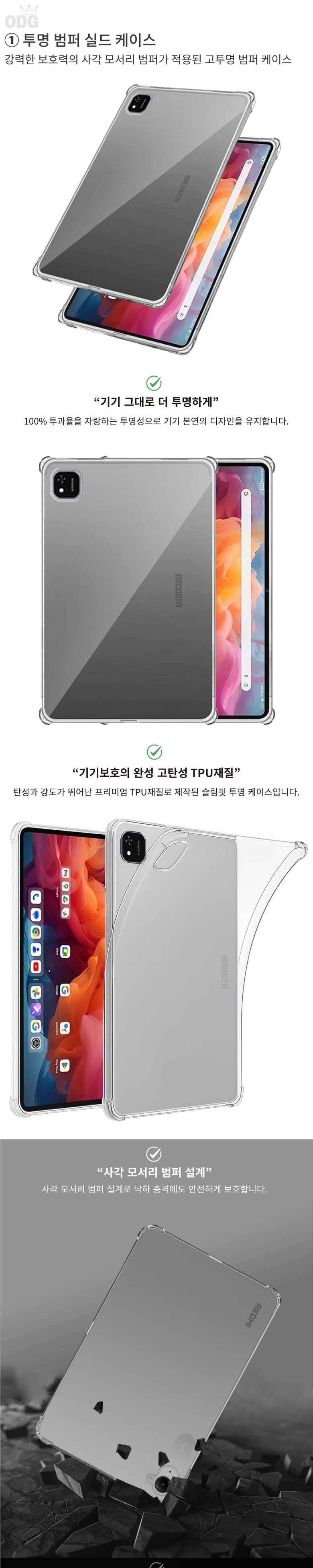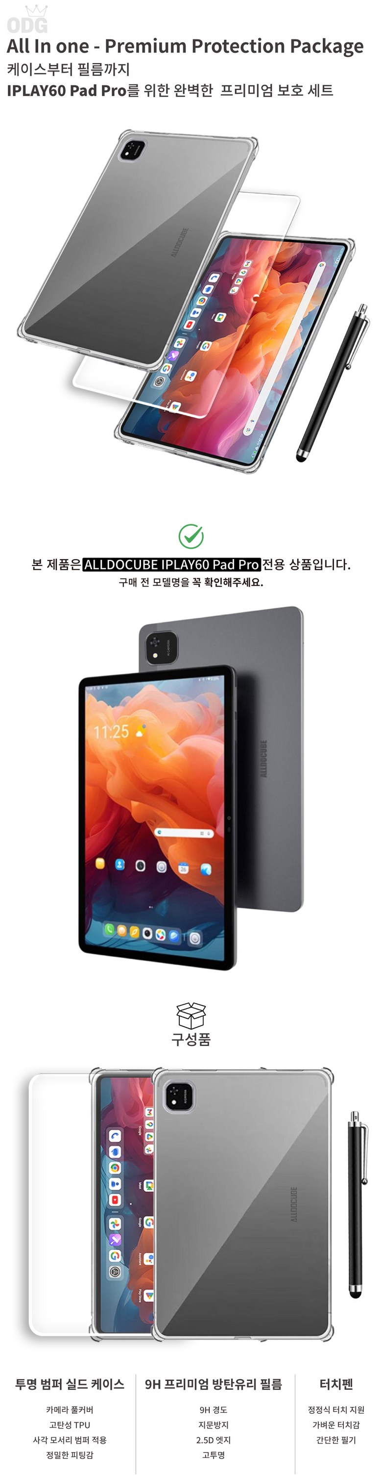 | 품명 및 모델명 | ALLDOCUBE Iplay60 Pad Pro 투명 범퍼 케이스 + 액정강화 방탄유리 필름 + 터치펜 | 인증/허가 사항 | 해당사항없음 |