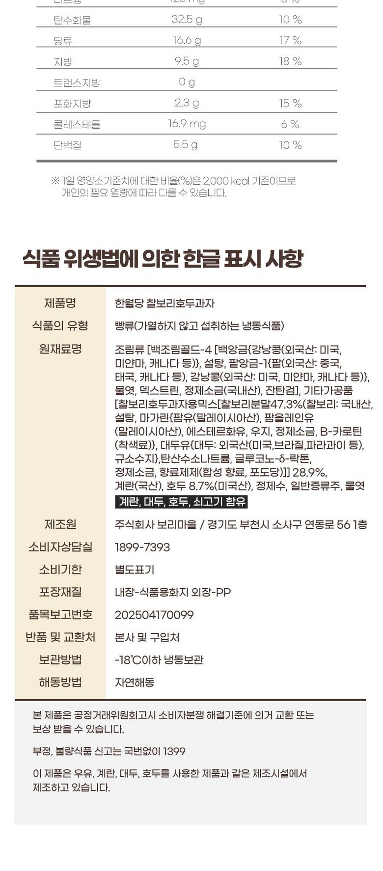 | 생산자 및 소재지 | 상품 상세페이지 참조 | 제조연월일, 소비기한 또는 품질유지기한 | 제조일로부터 12개월(-18℃ 이하 냉동) |