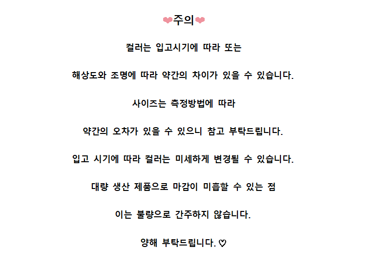 - ㆍ모니터 해상도의 차이로 인해 색상이나 이미지가 실제와 달라, 고객이 단순 변심으로 교환/반품을 무료로 요청하는 경우