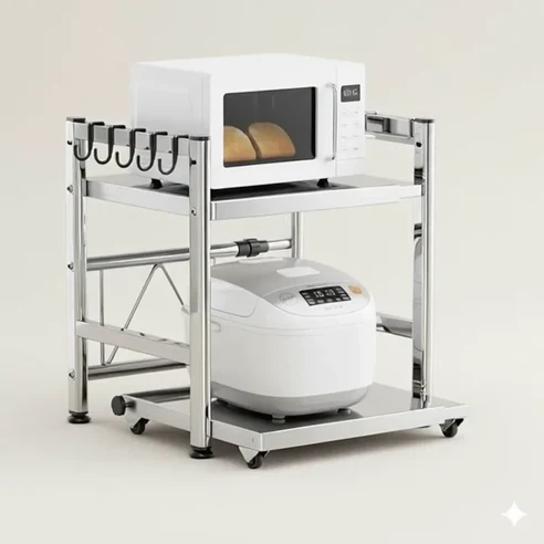 전자렌지장 전자레인지 선반 거치대 2단 다이 수납장 폭조절 블랙