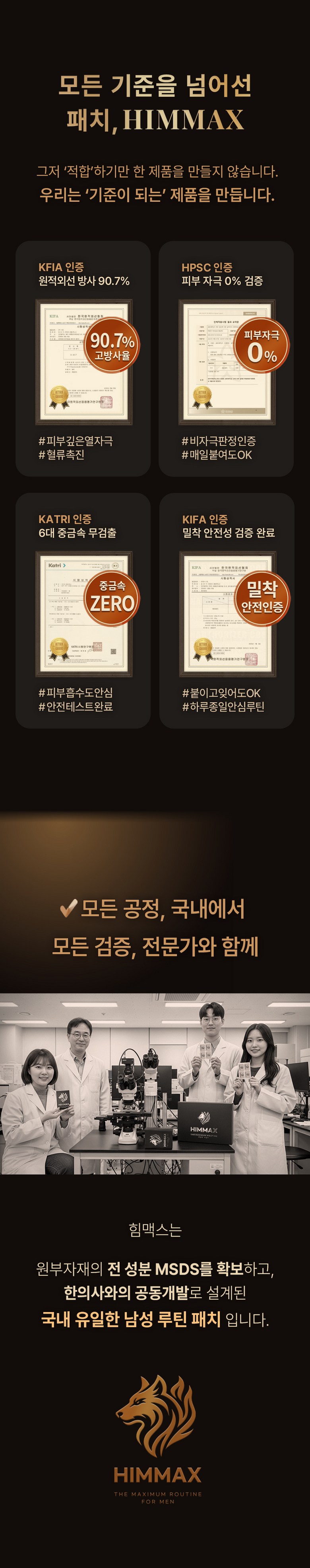 | 품명 및 모델명 | 힘맥스 아르기닌 패치 | 인증/허가 사항 | 상품 상세페이지 참조 |