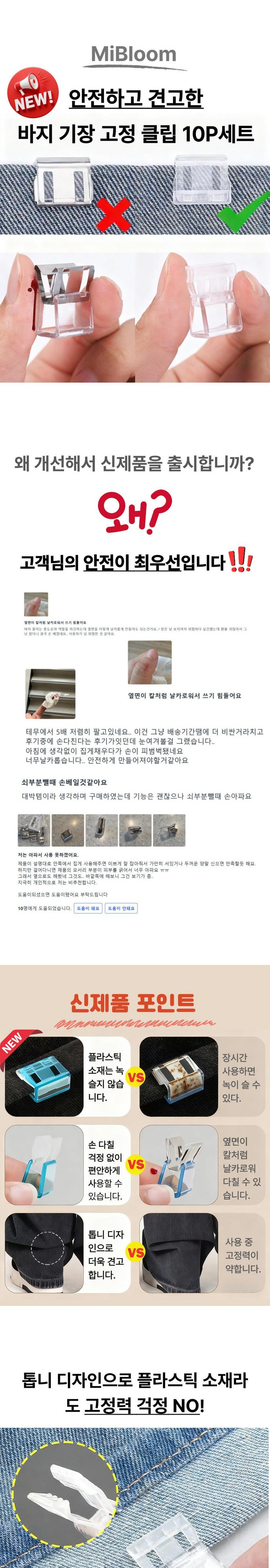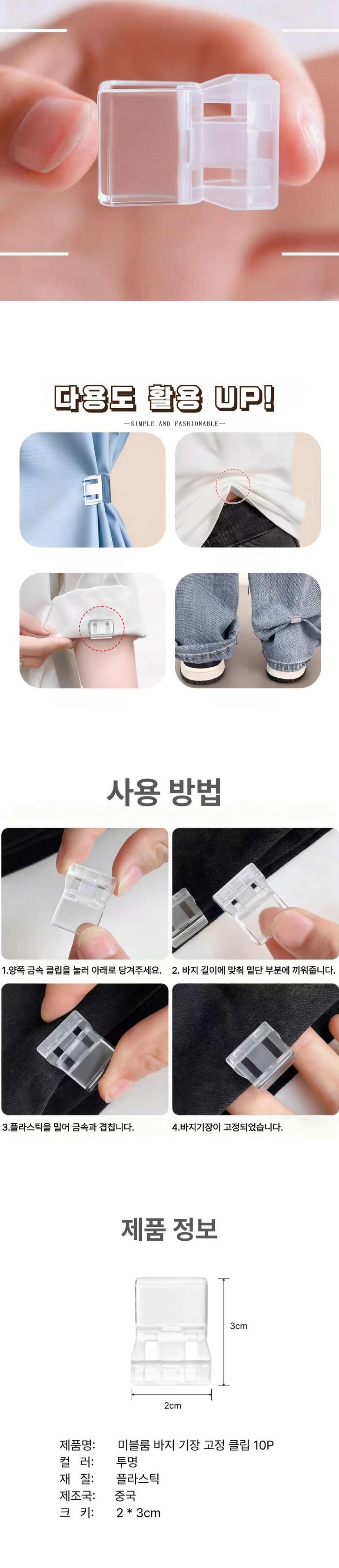 | 품명 및 모델명 | 미블룸 바지 밑단 기장 길이 줄이기 수선 고정클립 10개 세트 | 인증/허가 사항 | 해당없음 |