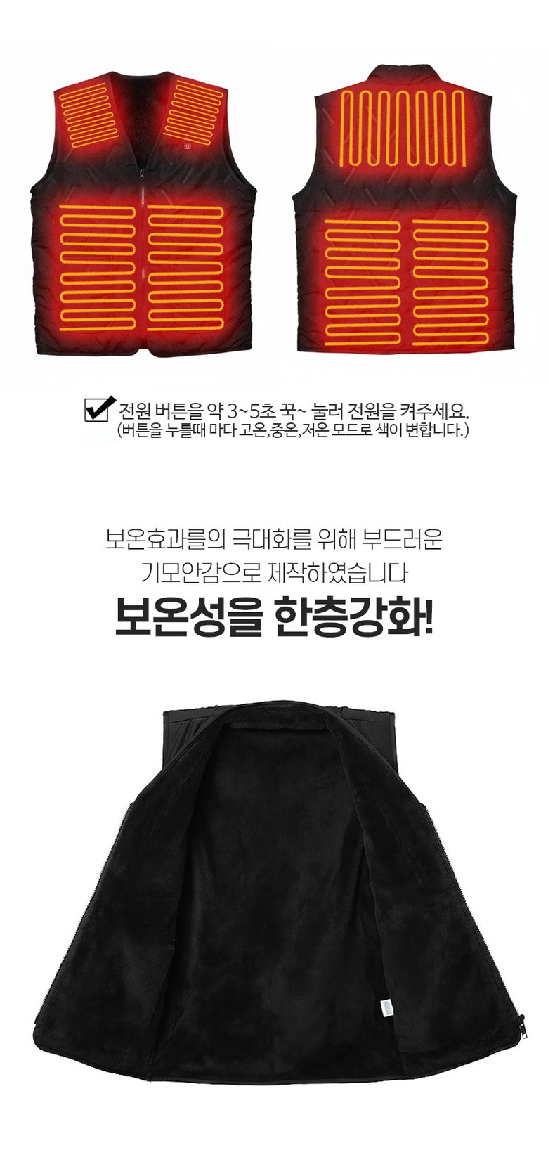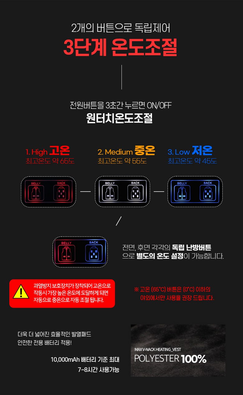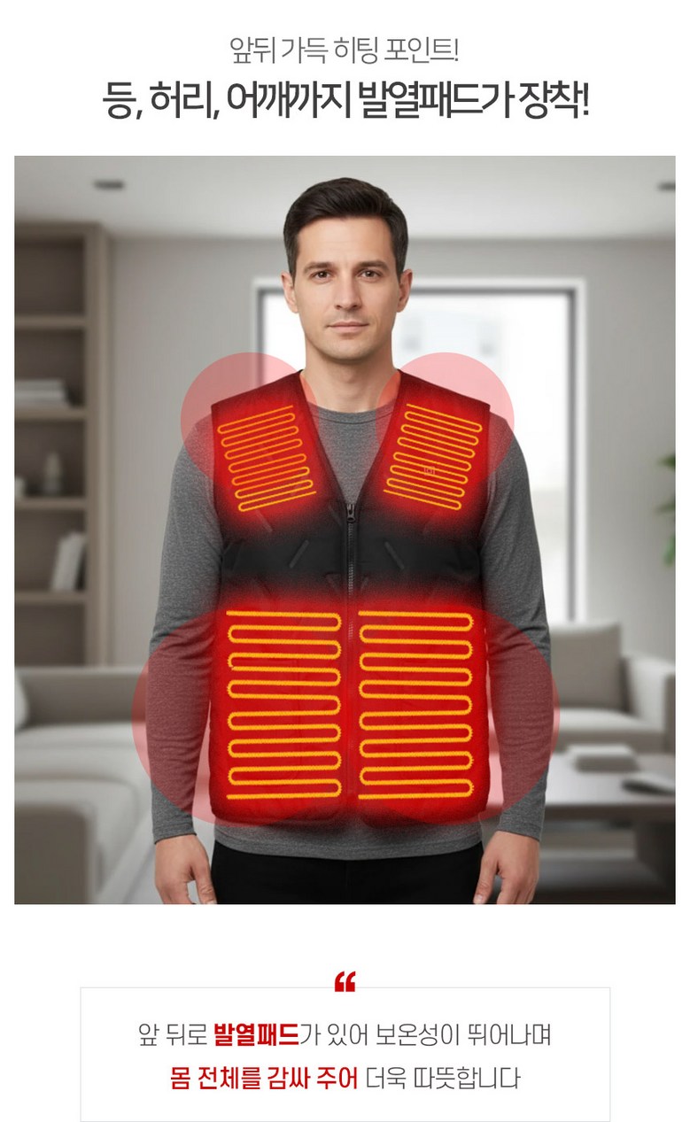 | 제품 소재 | USB 온도조절 발열조끼 | 색상 | 블랙 |