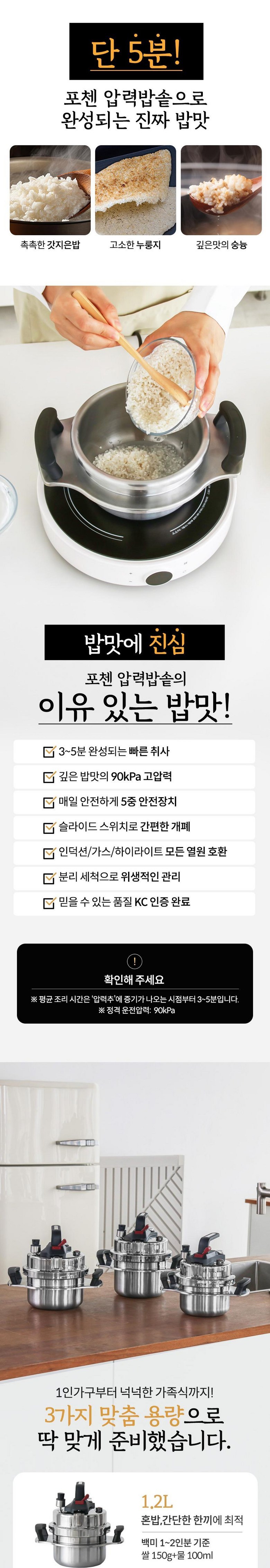 | 품명 및 모델명 | 포첸 압력밥솥 풀세트 3종 | 재질 | 알류미늄,스테인리스,고무제 |
