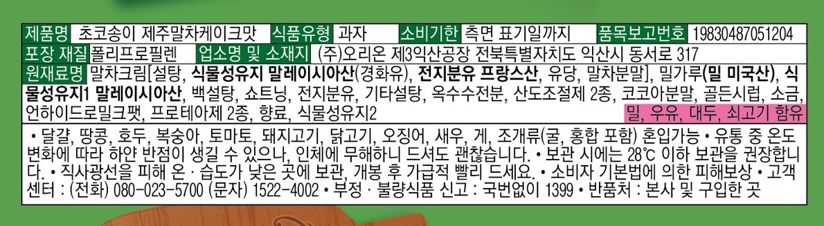 | 생산자 및 소재지 | 컨텐츠 참조 | 제조연월일, 소비기한 또는 품질유지기한 | 업데이트 예정 |