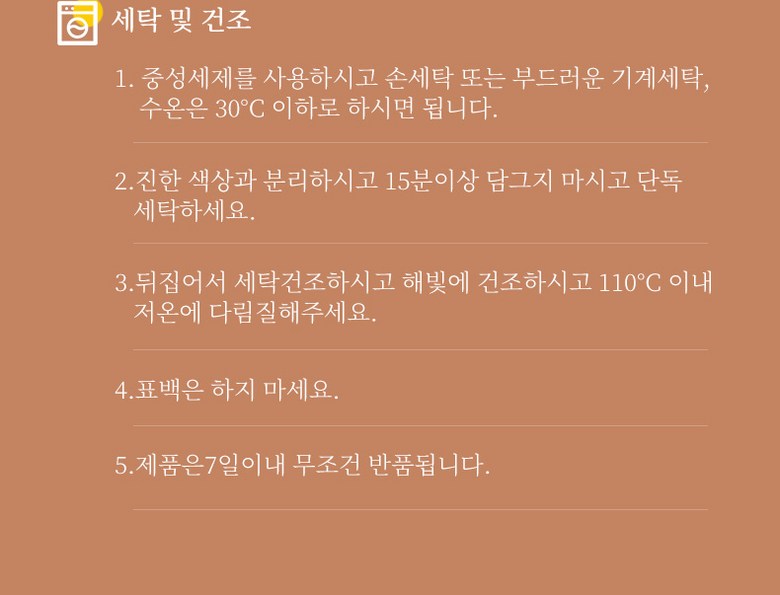 - ㆍ모니터 해상도의 차이로 인해 색상이나 이미지가 실제와 달라, 고객이 단순 변심으로 교환/반품을 무료로 요청하는 경우