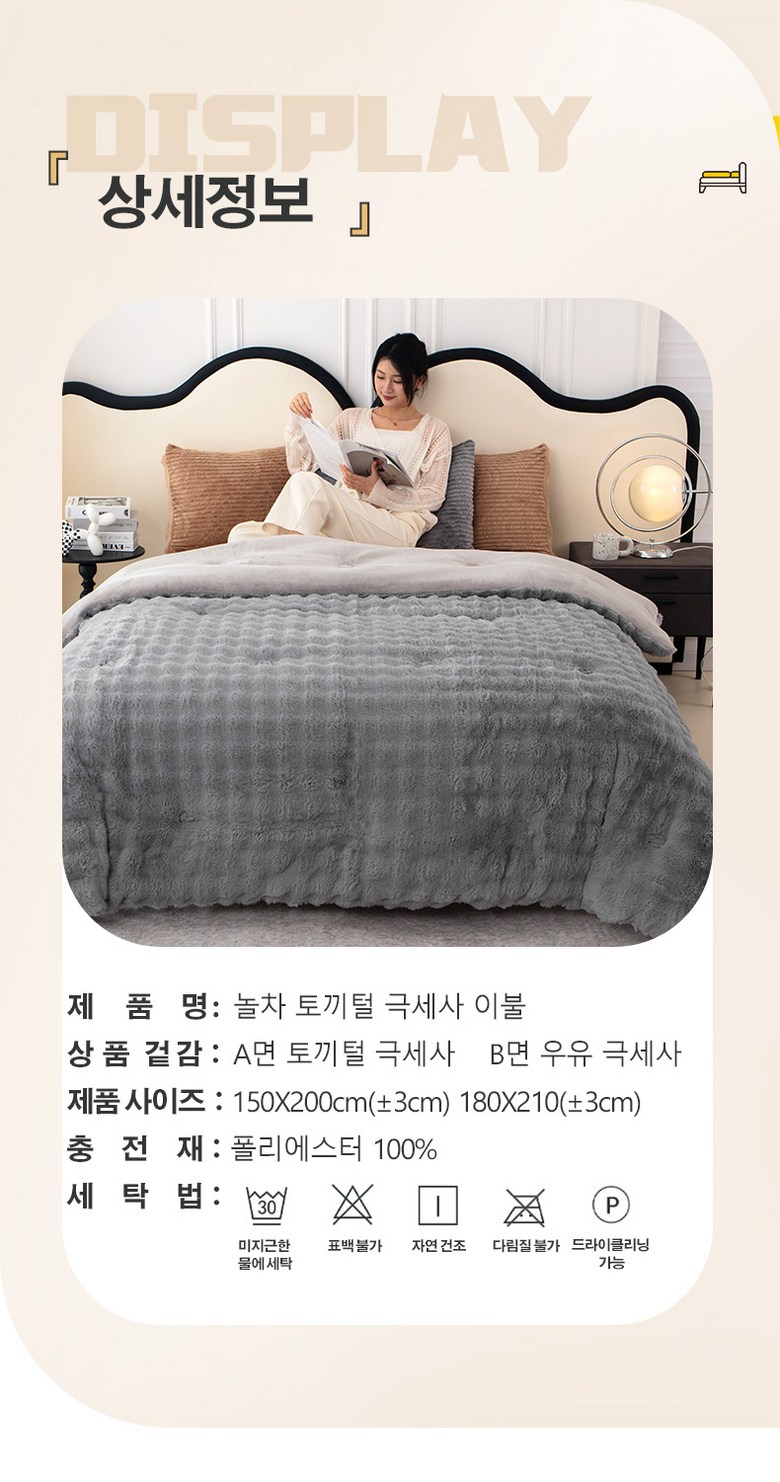 | 치수 | S 150X200cm Q 180X210cm | 제품구성 | 이불 1개 |