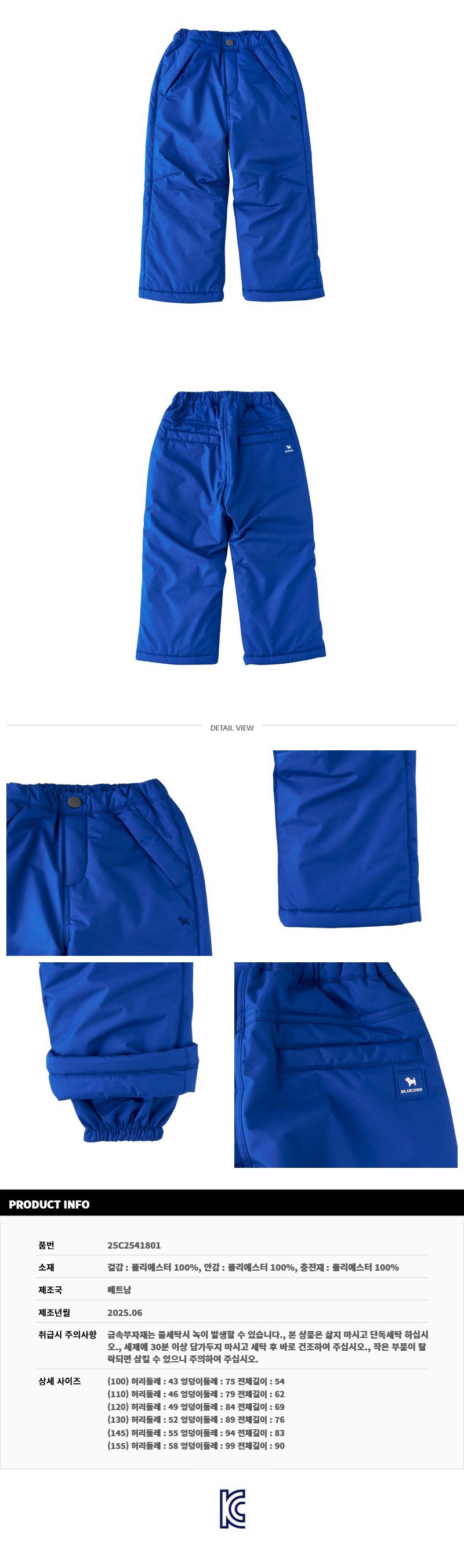 | 품명 및 모델명 | 블루독 스노우B.블루독패딩팬츠 BLUE 110 | KC 인증정보 | 유/KC마크 |