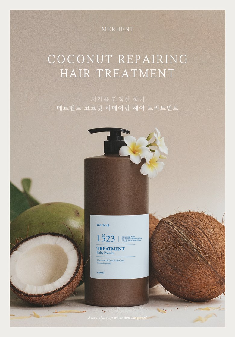 1+1 메르헨트 코코넛 대용량 트리트먼트 1500ml 베이비파우더향 약산성 미용실 단백질 헤어팩 두피, 1.5L, 2개