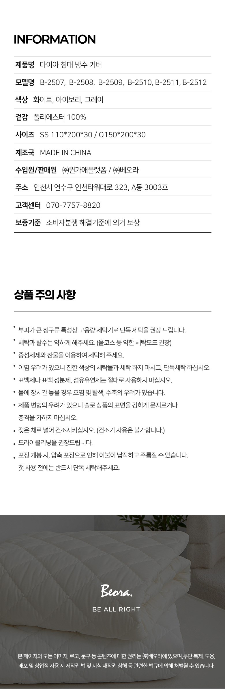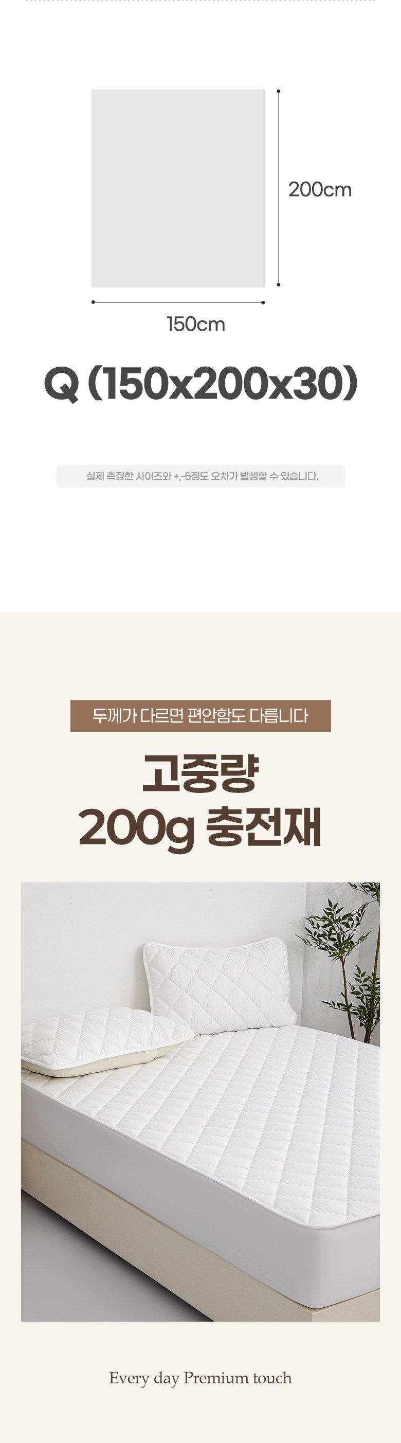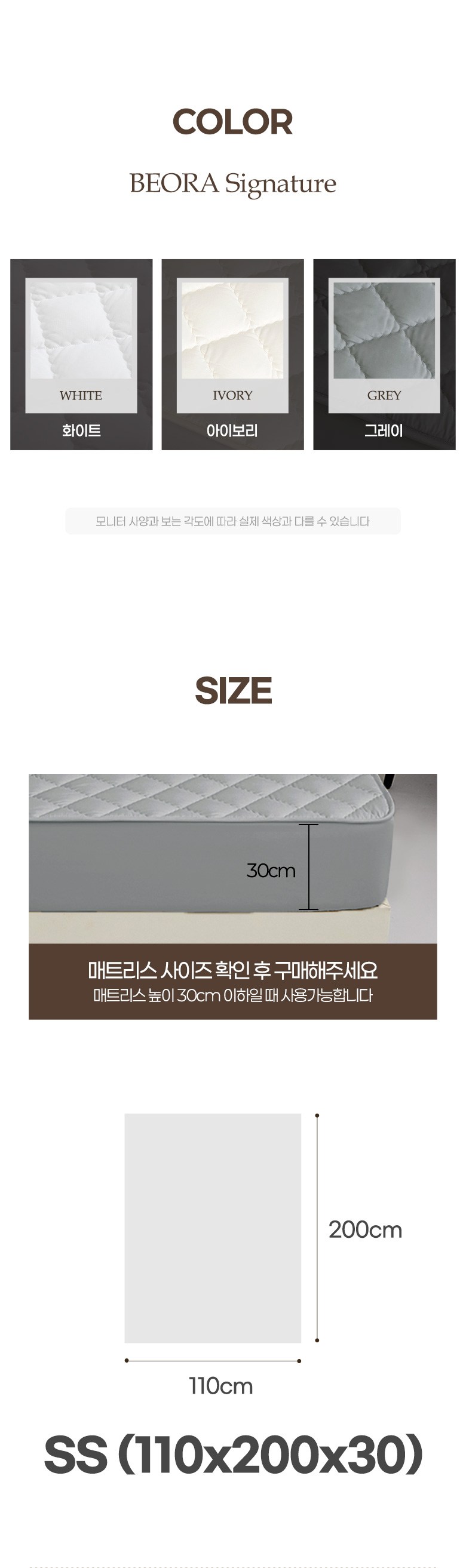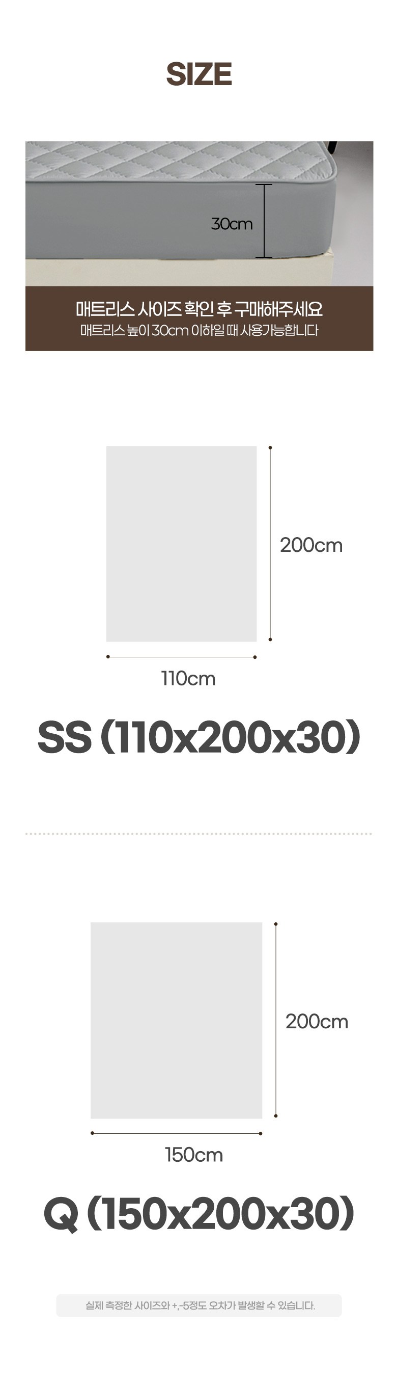 | 치수 | 슈퍼싱글 ss 110x200cm , 퀸 Q 150x200cm | 제품구성 | 방수커버 단품 |