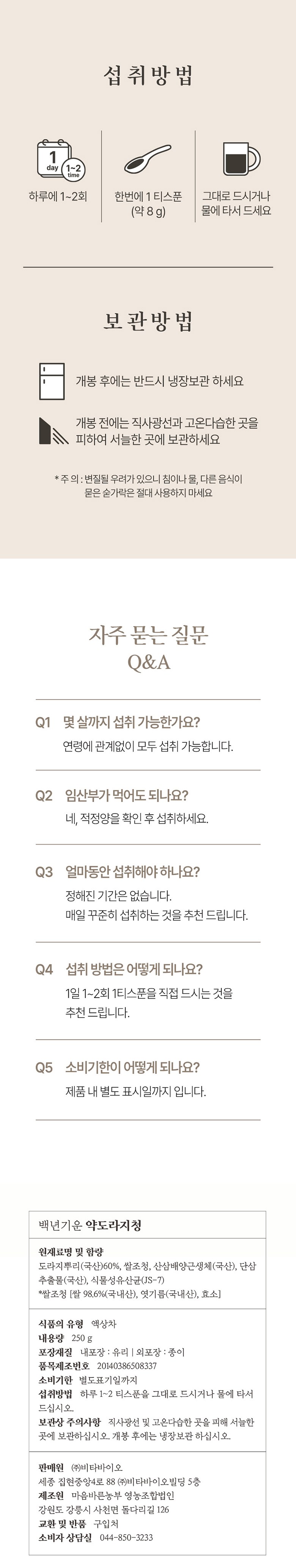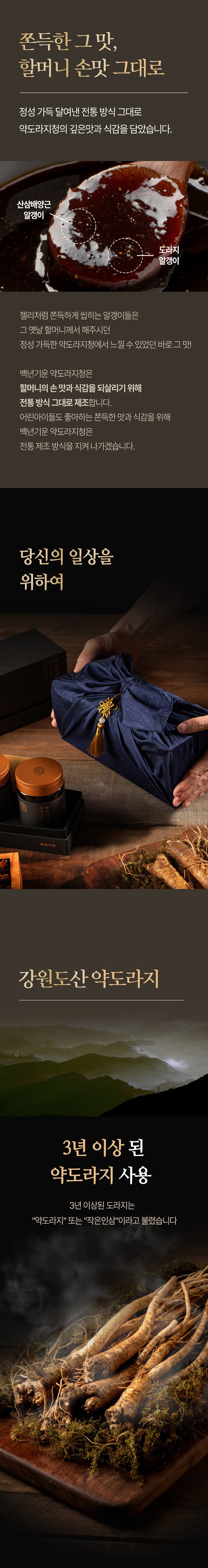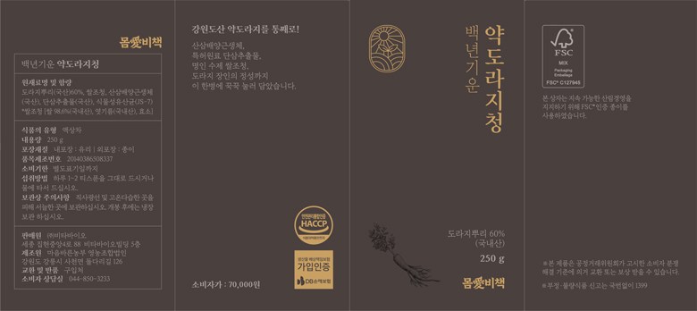 | 제품명 | 백년기운 약도라지청 | 식품의 유형 | 컨텐츠 참조 |