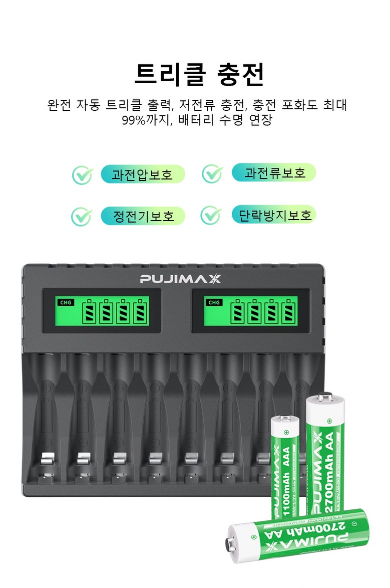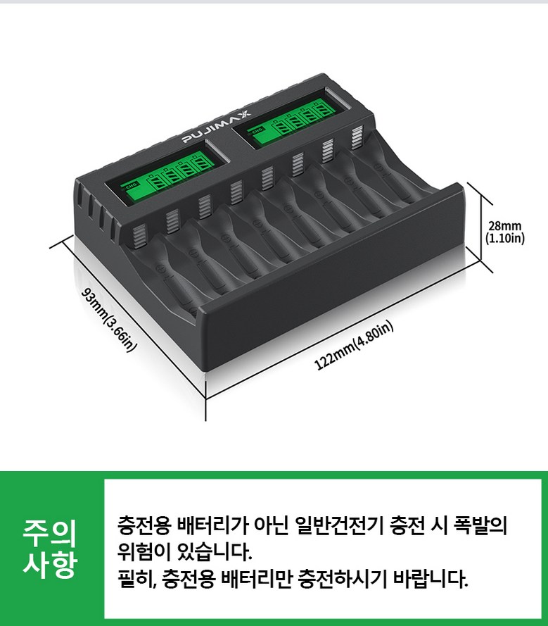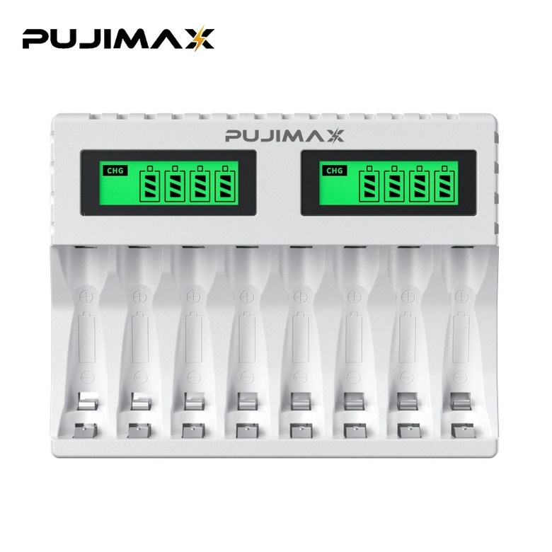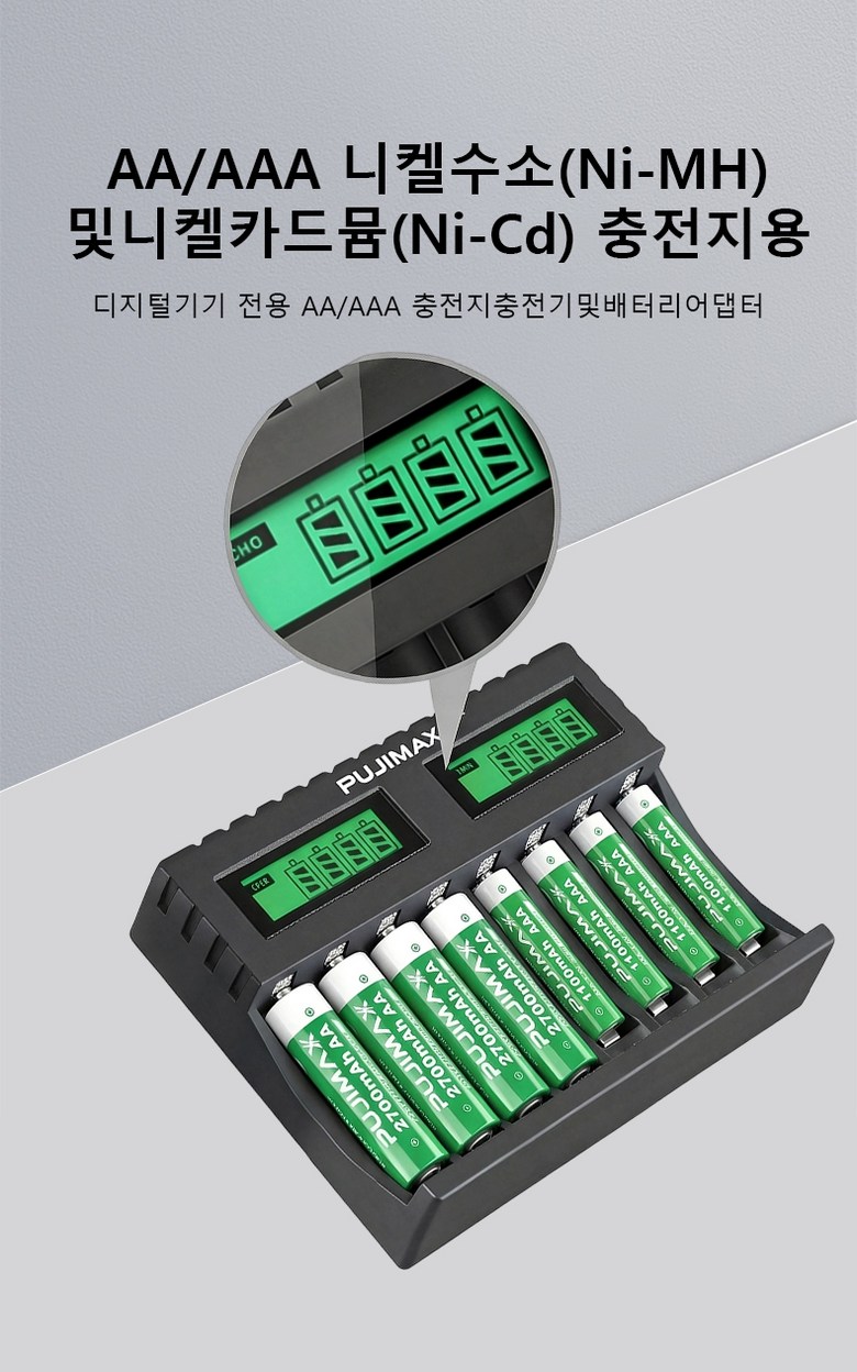 PUJIMAX AA/AAA 겸용 Ni-MH/Ni-Cd 급속충전기 충전배터리 1-8개 동시 충전기 MCU 스마트 제어 LCD 화면 잔량표시 충전기 LCD006, 1개