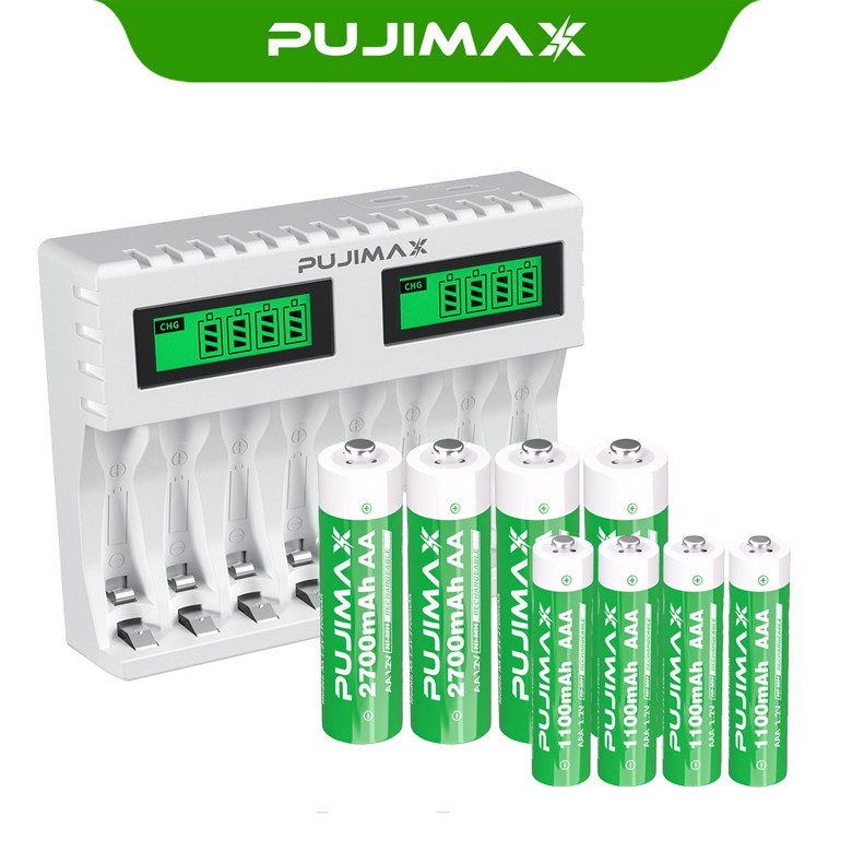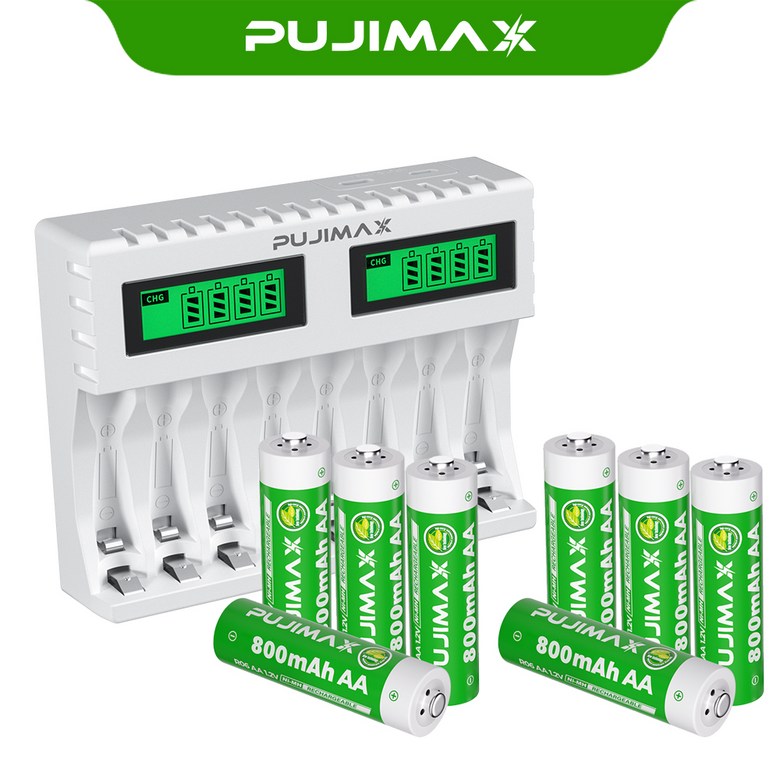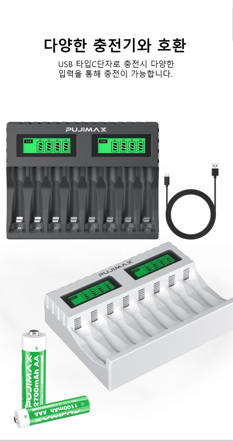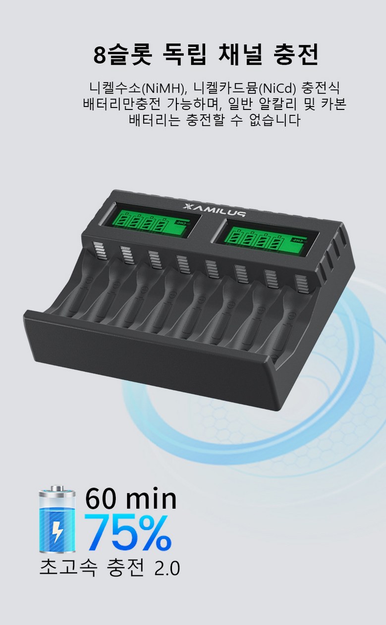 PUJIMAX AA/AAA 겸용 Ni-MH/Ni-Cd 급속충전기 충전배터리 1-8개 동시 충전기 MCU 스마트 제어 LCD 화면 잔량표시 충전기 LCD006, 1개