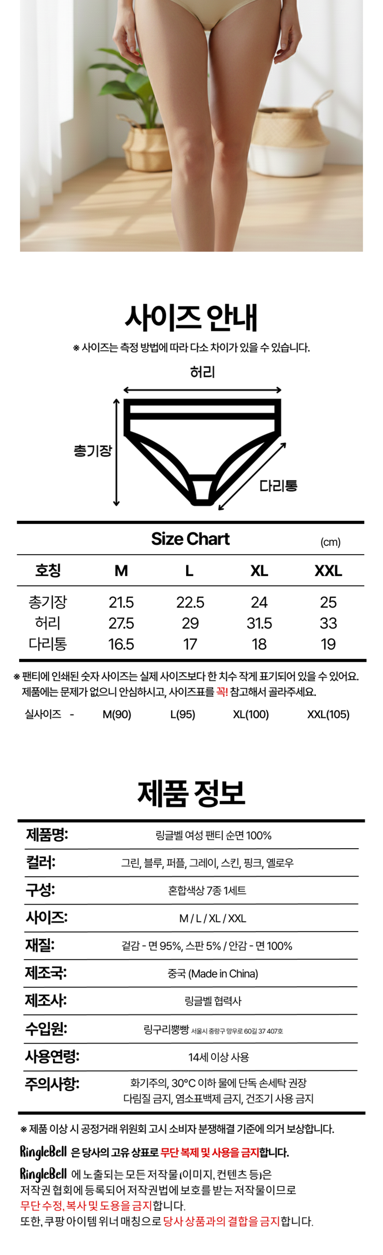 | 치수 | M(90), L(95), XL(100), XXL(105) | 제조자(수입자) | 링구리뿡빵 |
