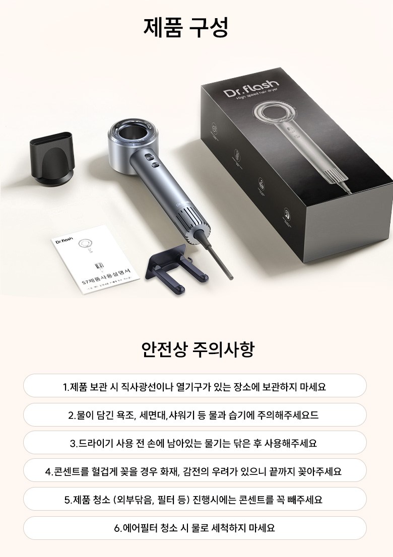 | 품명 및 모델명 | Dr.flash 헤어드라이어/S7 | KC 인증정보 | R-R-JRYH-X2S; HU073587-25004 |