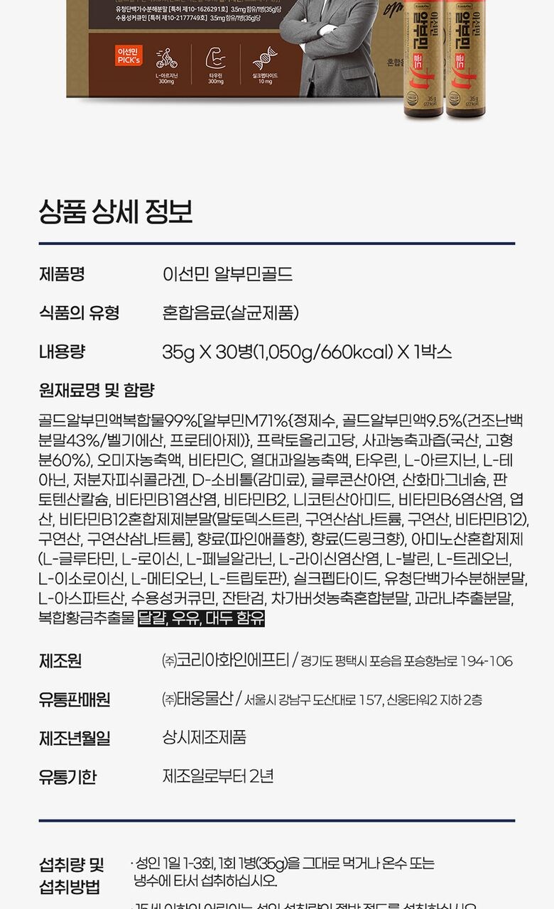 | 제조연월일, 소비기한 또는 품질유지기한 | 상품 상세페이지 참조 | 세부 품목군별 표시사항 | 상품 상세페이지 참조 |