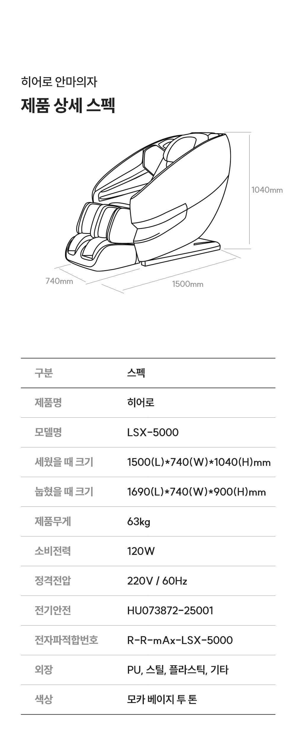| 품명 및 모델명 | 전기마사지기 / LSX-5000 | KC 인증정보 | HU073872-25001, R-R-mAx-LSX-5000 |